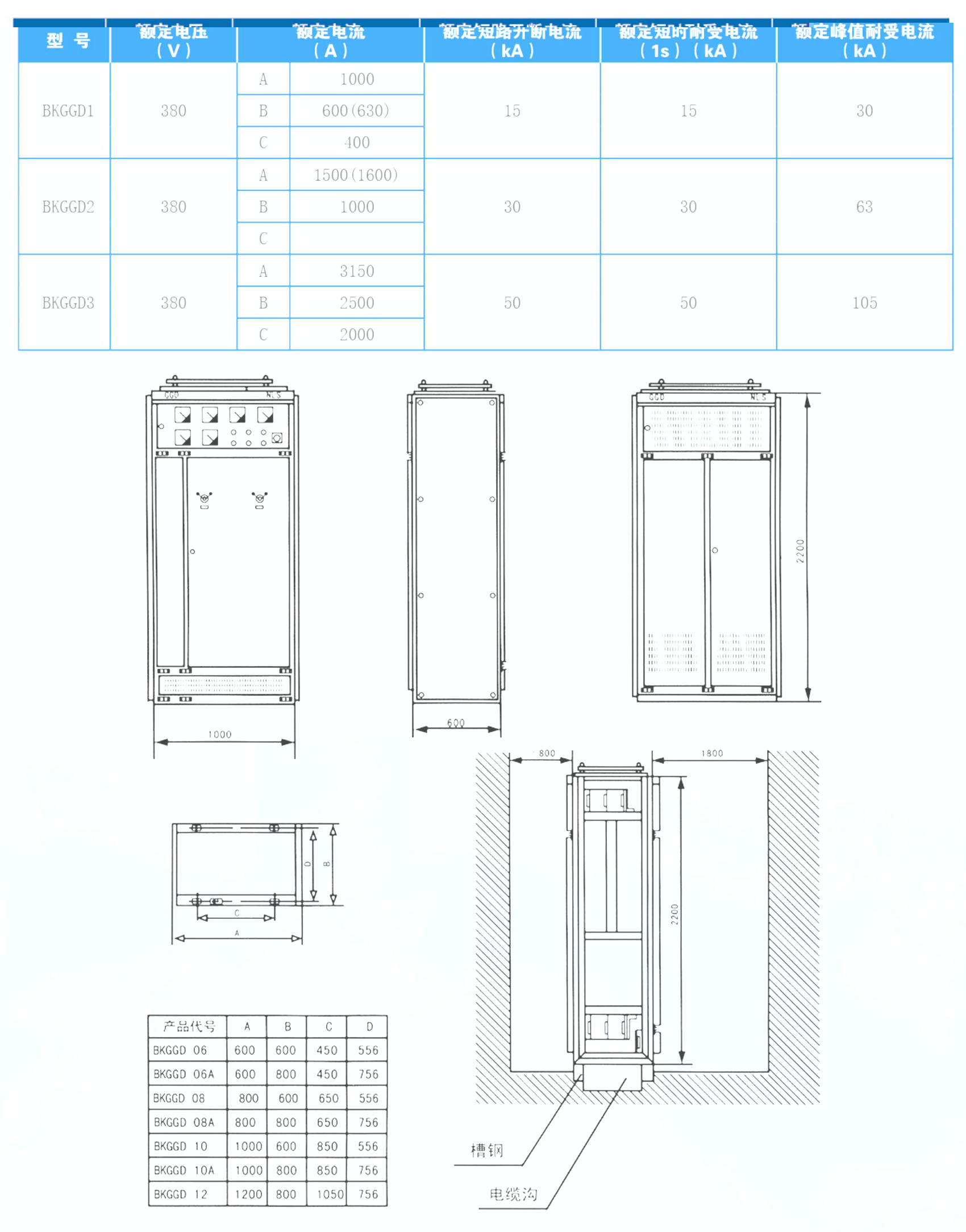 BKGGD型交流低压配电柜适用于发电厂、变电站、厂矿企业等电力用户的交流50Hz,额定工作电压380V,额定工作电流至3150A的配电系统,做为动力、照明及配电设备的电能转换、分配与控制之用。BKGGD型交流低压配电柜是根据广大电力用户及设计部门的要求,本着安全、经济、合理、可靠的原则设计的新型低压配电柜。产品具有分断能力高,动热稳定性好,电气方案灵活、组合方便,系列性、实用性强、结构新颖、防护等级高等特点。可作为低压成套开关设备的更新换代产品使用。